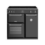 CUISINIÈRES Gamme de cuisson à induction – Largeur 90 cm – 5 feux à induction – 3 fours (31 + 54 + 87 L) – 1 grill – Programmateur numérique – Classe énergétique A – Émail impeccable facile à nettoyer – Couleur noire
